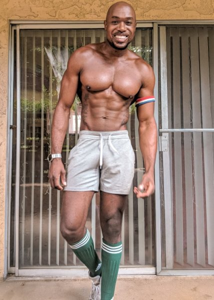 American jock based in Los Angeles. Brazilian-Jamaican heritage. Handsome, big meat, freeballing in basketball shorts.